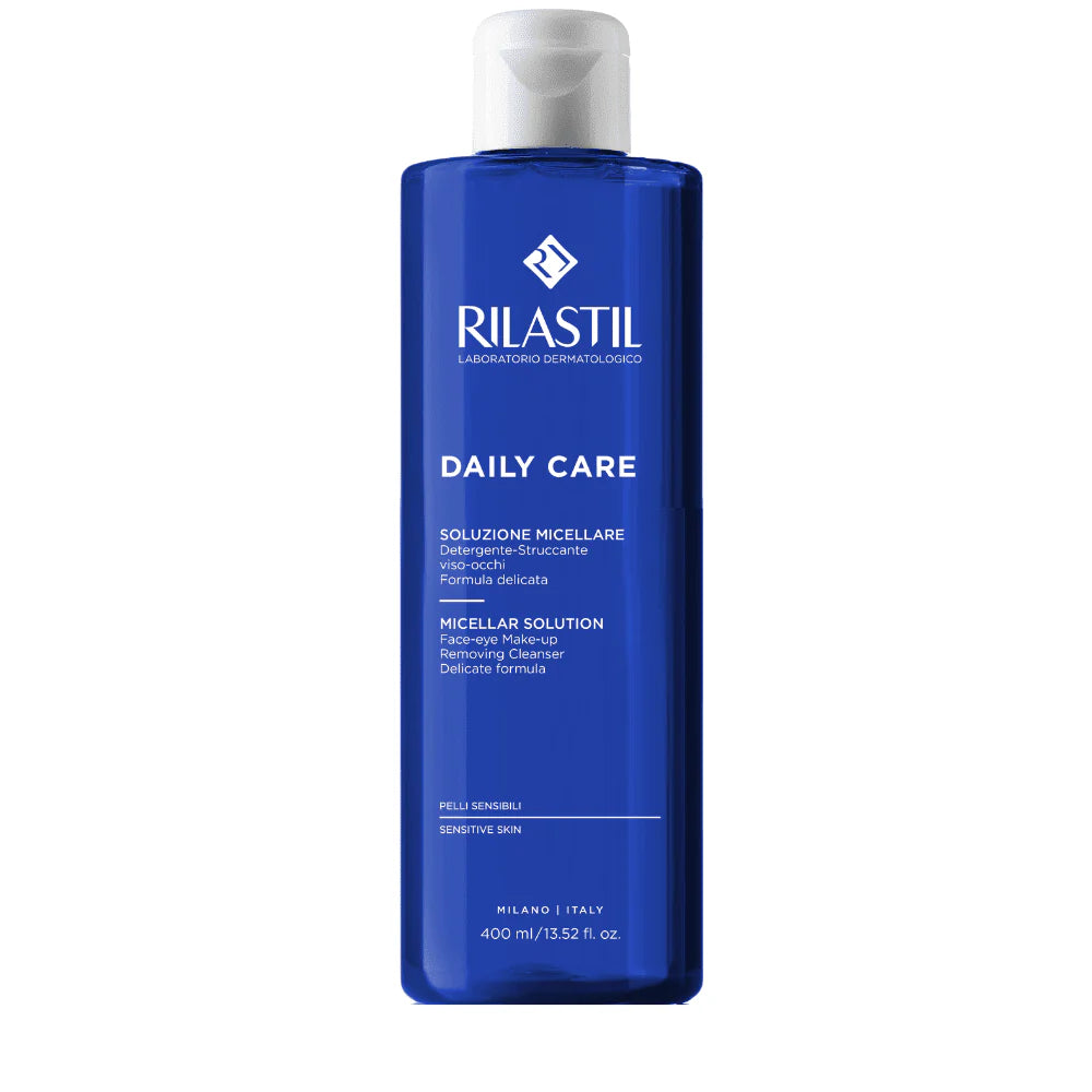 Rilastil Daily Care Solución Micellar, es un agua limpiadora y desmaquillante con pH neutro similar a la lágrima, apta para todo tipo de pieles, incluso las más sensibles.