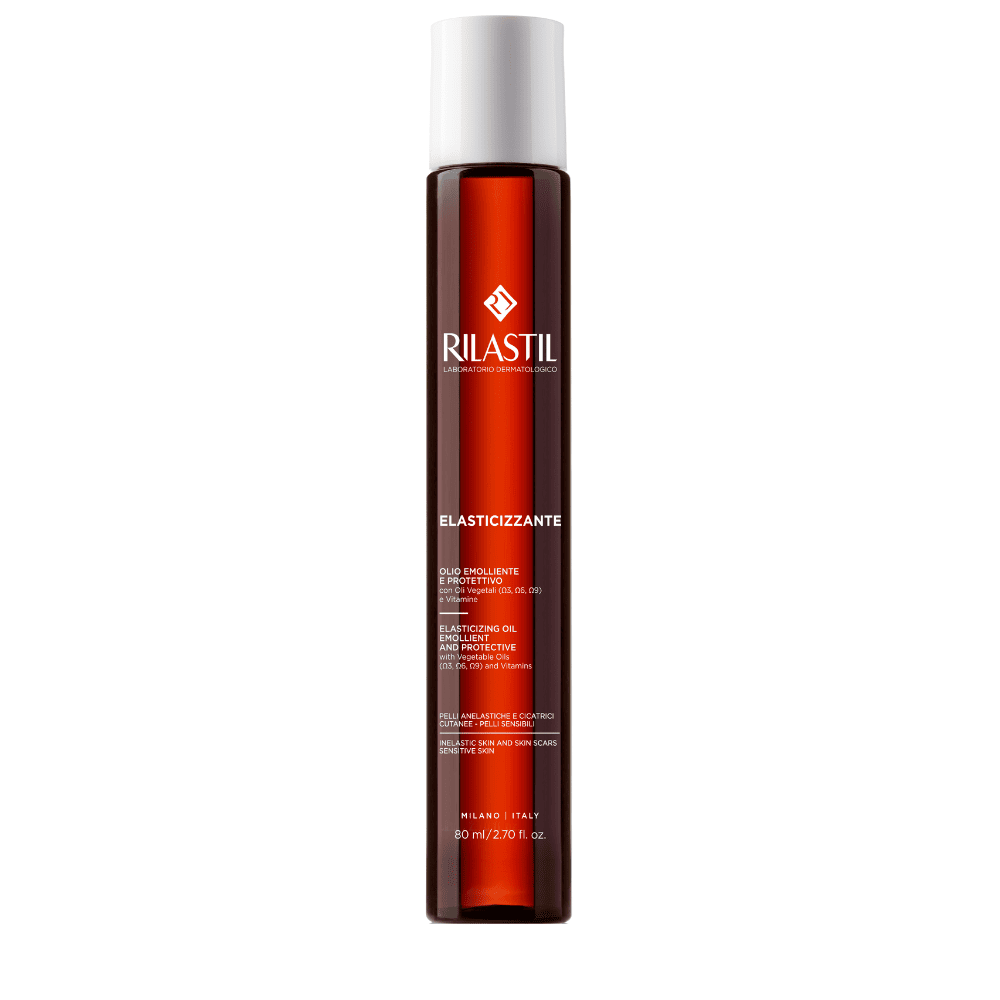 Rilastil Elastizante Aceite, es un aceite corporal recomendado en caso de pieles secas e inelásticas. Con un 89% de principios activos naturales y un 18% de aceites vegetales. Indicado también para la piel del bebé y como tratamiento de cicatrices y estrías.